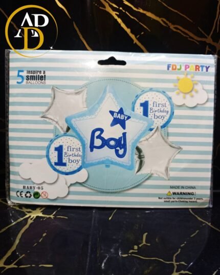 Baby Boy 1st Birthday Foil Balloon 5pcs/ Set For Welcome Baby , Gender Reaveal Decoration and Celebration