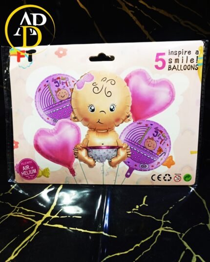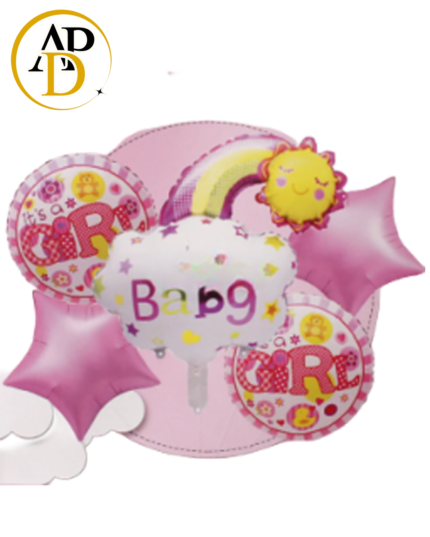 Baby Girl Foil Balloon 5pcs/ Set For Welcome Baby , Gender Reaveal Decoration and Celebration