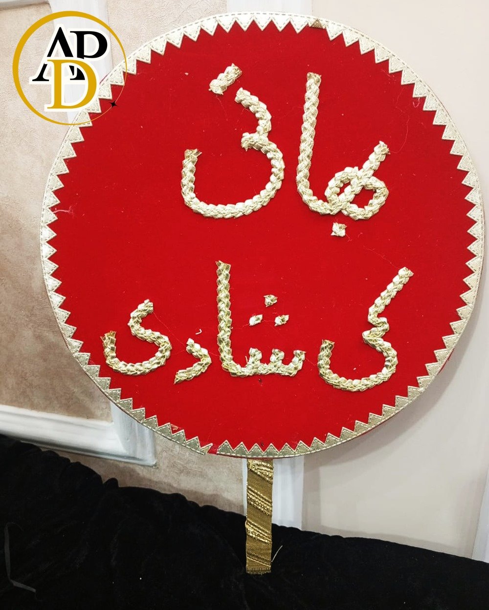 ✨ Golden Handcrafted Calligraphy – “بھائی کی شادی” (Bhai Ki Shaadi) in a stunning embroidered design.