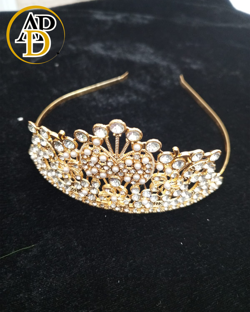 Make your moment unforgettable with this stunning golden tiara, designed to add grace and glamour to your look!