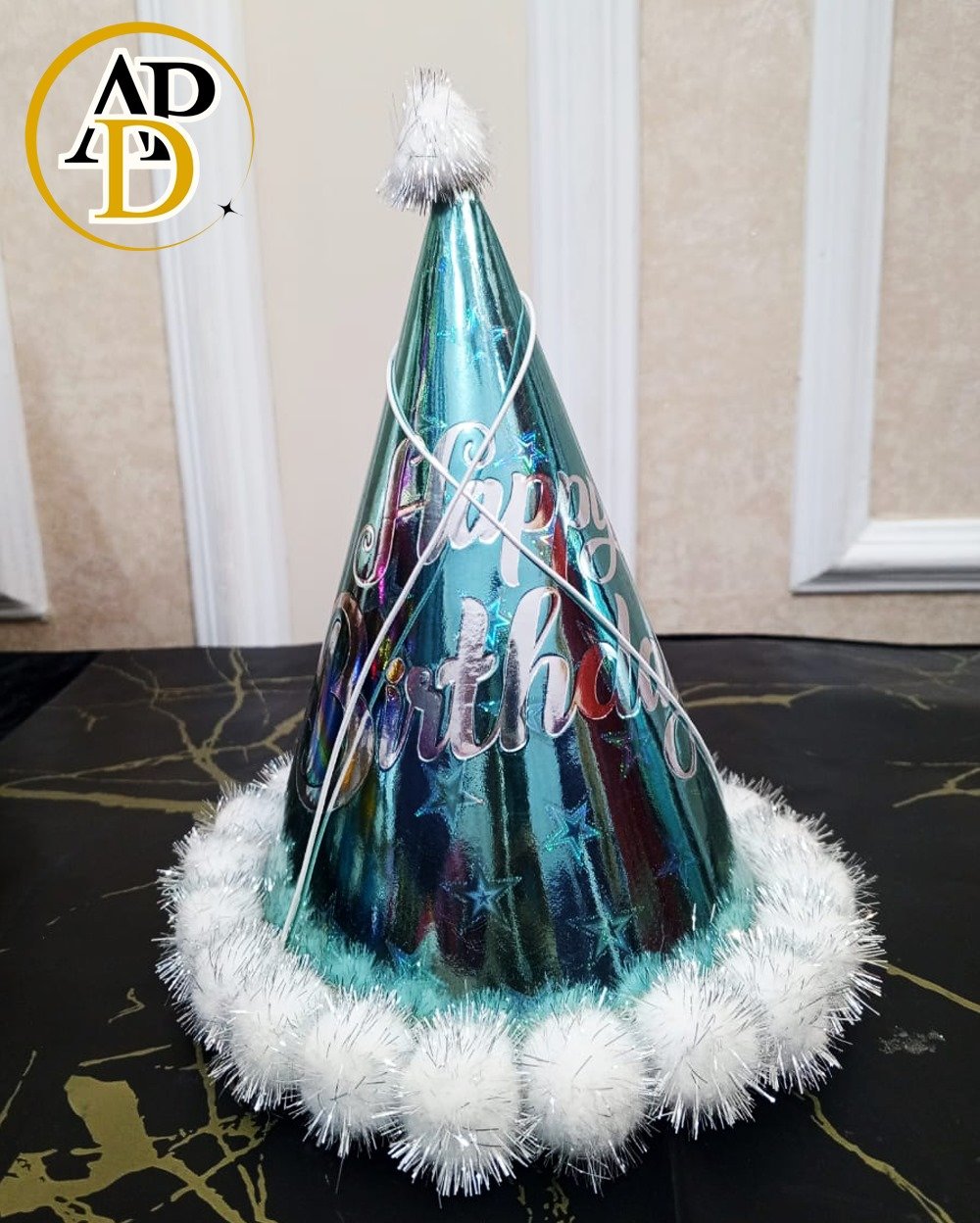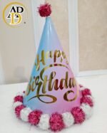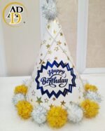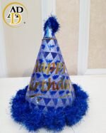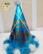 Make your birthday celebrations extra special with this stunning Shiny Happy Birthday Party Cap. Designed with a metallic blue finish, elegant silver “Happy Birthday” text, and fluffy white pom-pom trim, this cap adds a touch of glamour to any party.